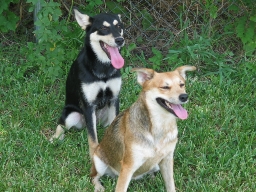 Pam and Cliff's AnimalsMany animals share our home. Pictured below are our four cats (in order: Acey, Destiny, Kyle, and PJ), our two dogs (Pixel and Roxy), our two of our three horses (Nugget and Trouble; Sleepy isn't pictured). We also have egg-laying chickens, ducks, a rooster, and several fish. |